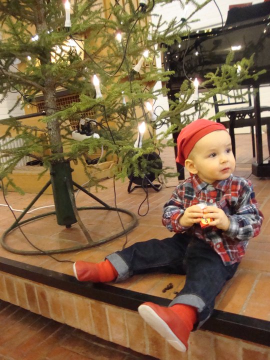 eita ja pystytettiin kuusi parvekkeelle. Muskarissa ja kerhossa käytiin joulujuhlassa. Vauvauinti loppui ja Kaapo kävi ensimmäistä kertaa uimahallissa. Joulun pyhät vietettiin sukulaisen kanssa, Kaapo sairasti rajun enterorokon. Sen jälkeen olin itse kipeänä. Välipäivien alennusmyynnit jäivät siis sairastelun vuoksi käymättä. Vuodenvaihde juhlittiin kotona perheen kesken. Löhöiltiin sohvalla verkkareissa, syötiin hyvin ja katseltiin raketteja parvekkeelta.