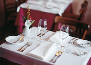 Kuten jo mainitsin, annokset olivat kauniita ja näyttäviä. Kuitenkaan en viitsinyt olla epäkohtelias ja heilua kameran kanssa illallispyöydässä. Annokset jäivät siis kuvaamatta, mutta jokainen voi mielessään kuvitella kauniisti asetellut annokset ranskalaiseen pelkistettyyn ja silti leikkisään tapaan.
