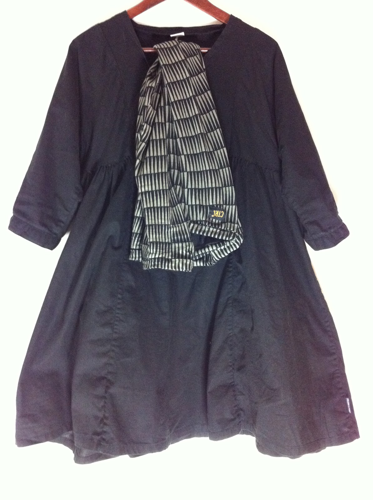 Asukuvaa(kaan!) en saanut itsestäni. Päällä minulla kuitenkin oli Polarn O. Pyretin musta äitiysmalliston mekko (ei, en ole raskaana), CTRLin musta-harmaat legginssit (mietin pitkään lilojen Wolfordin sukkahousujen ja legginssien väliltä), sekä syksyllä netistä tilaamani matalakantaiset polvenyli-tekonahkasaappaat. Meinasin vielä lainata mummoltani turkkia, mutta en lopulta jaksanut panostaa sen enempää. Ulkotakkina minulla oli tämän talven palvellut Monkin sininen tusinatoppatakki. Käsilaukkuna toimi vuosia vanha H&M hauska keltainen magneettien avulla kirjekuorimalliksi muutautuva laukku.