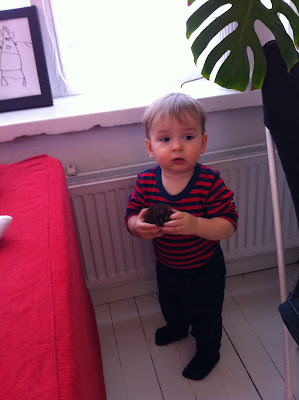 | Kaapo tykkäsi touhuta ja leikkiä uusilla leluilla. Lähdettäessä tulikin itku. |