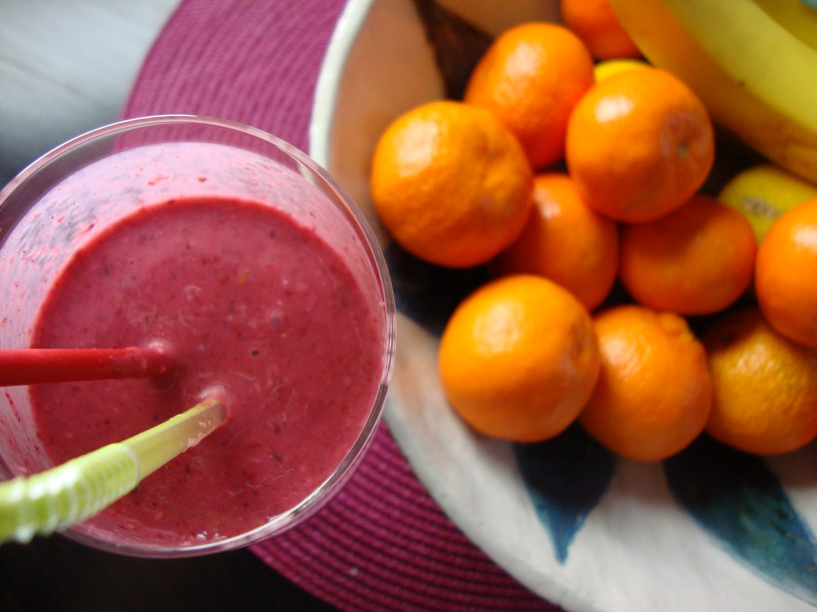 Halutessa joukkoon voi lisätä vielä kourallisen kauratyynejä tai leseitä tai/ja lorauksen täysmehua. Lisää supervoimaa saat lisäämällä vielä mukaan gojimarjoja. Marjoja ja hedelmiä voi vaihdella oman maun mukaan. Tästä tulee noin 1½-2 annosta.