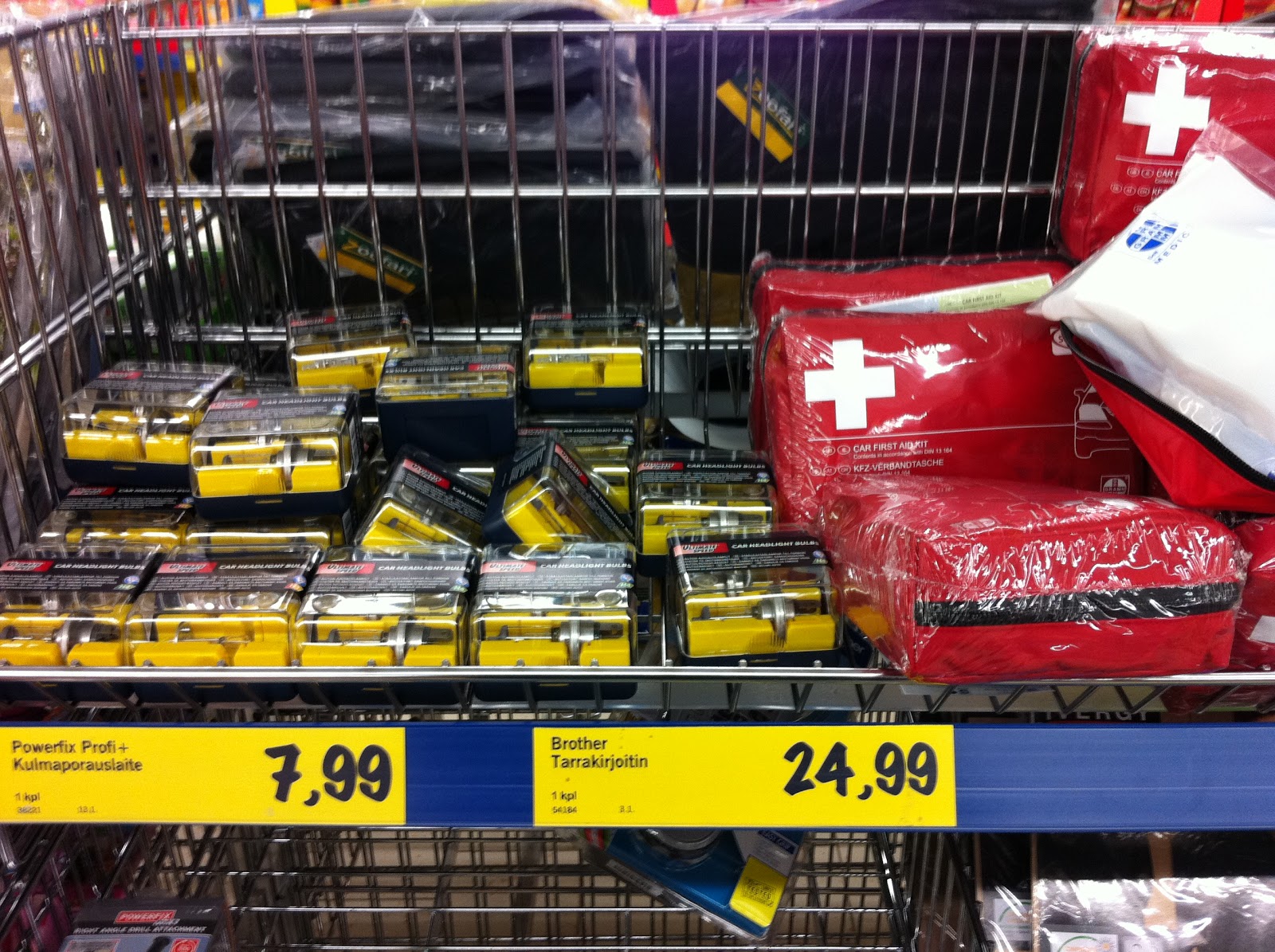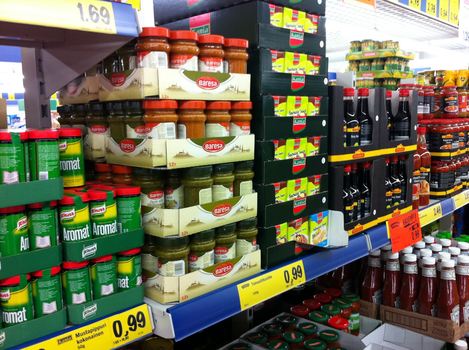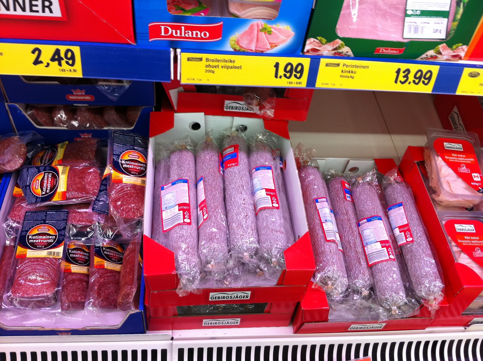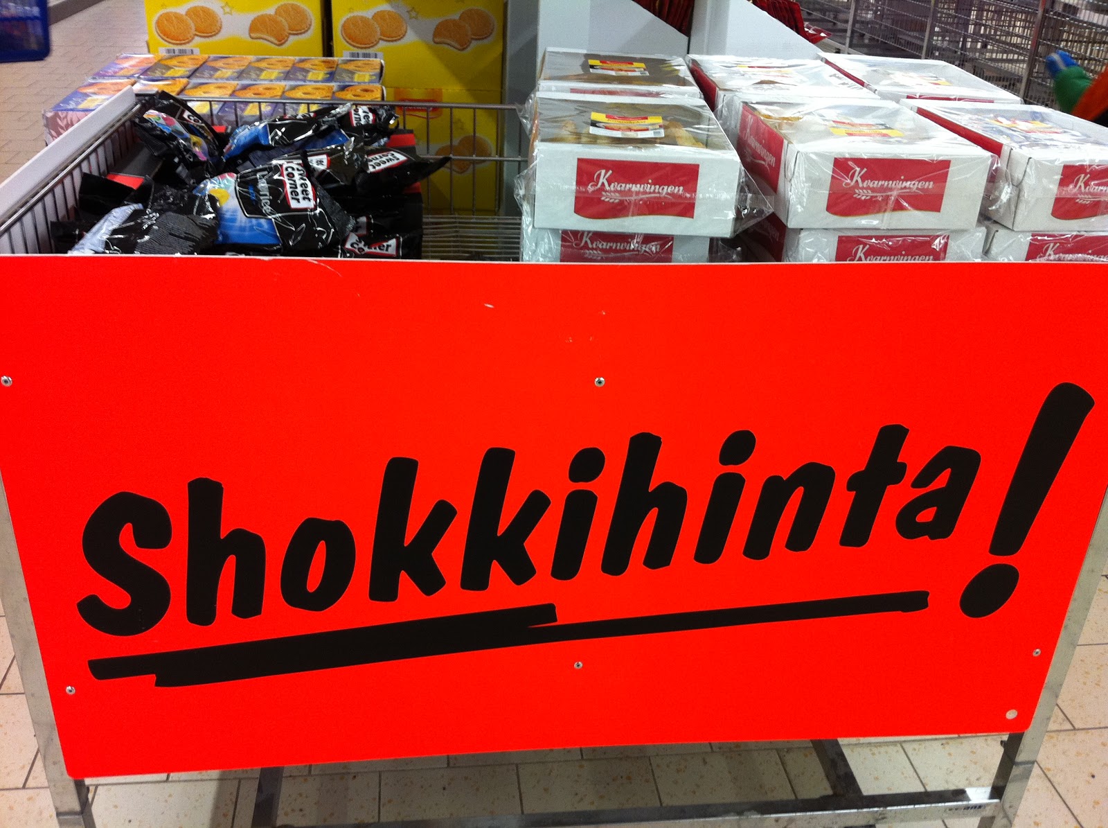 Tälläkin kertaa ihmettelin erilaisia hilloja, marmeladeja, pähkinöitä, säilykkeitä, ihan uudenlaisia mikroeineksä ja makkaroita ja erilaisia pakasteita. Suurta huvitusta aiheutti myös käytävä jossa myytiin mitä merkillisempää tavaraa. Ranne -ja polvitukia, työkaluja, vaatteita, imureita, skumppa coolereita, takan kipinäsuojia, kitaran vieittimiä… Osa ruokatuotteista oli tosi edullisia, jopa puolet esim alepan hinnoista. Pitäis käydä useammin, mutta sitten se ei tuskin olis enään niin hauskaa.