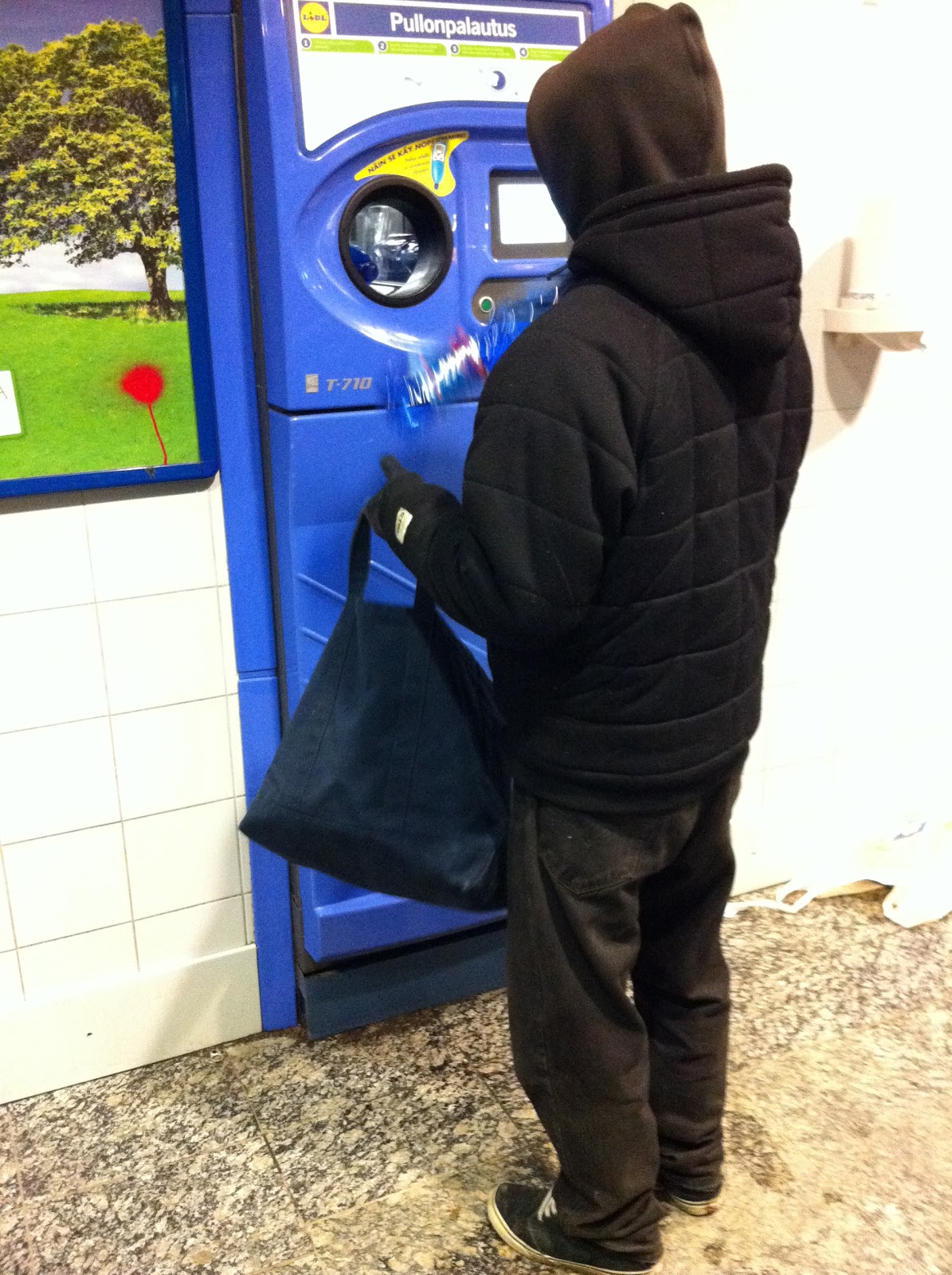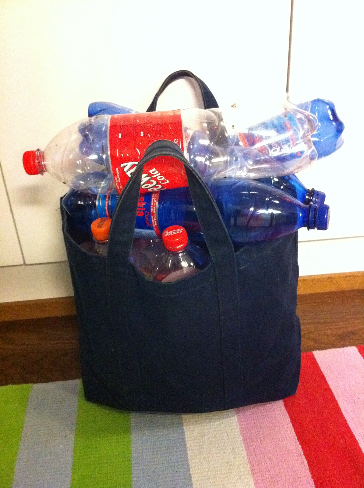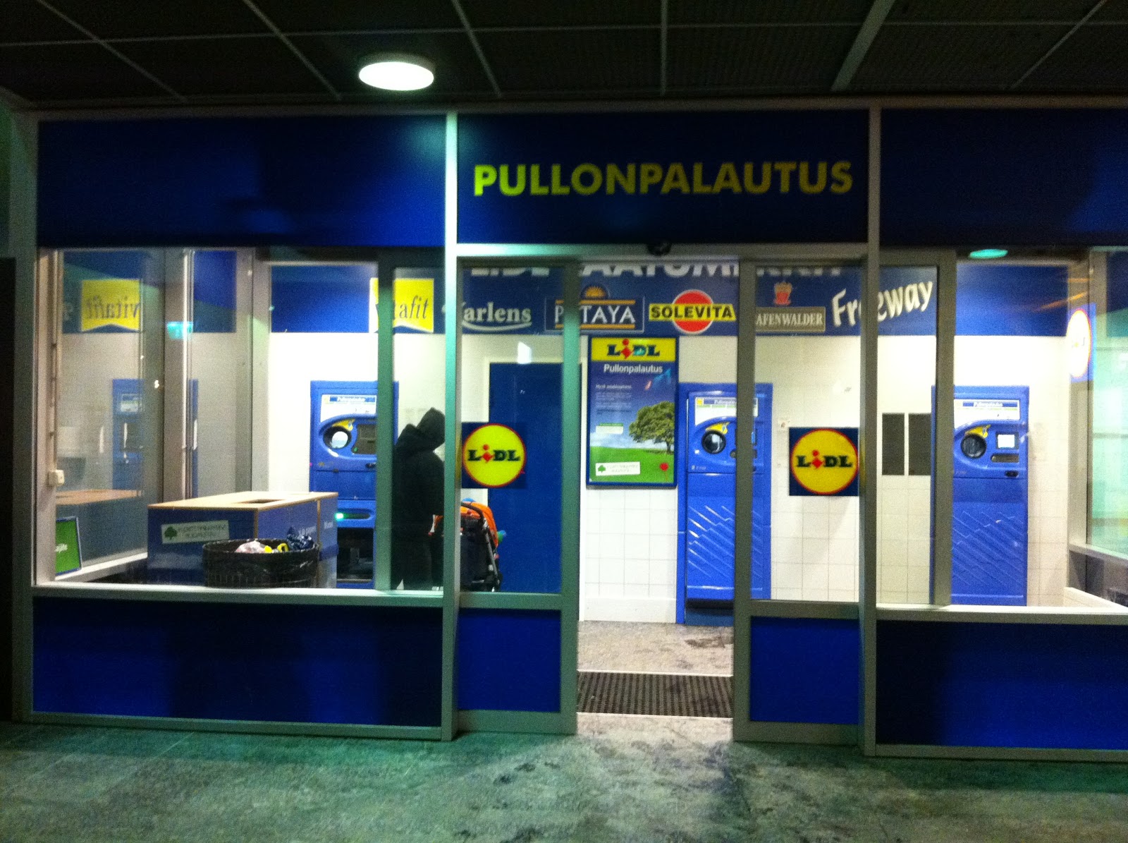 Ostettiin viime syksynä kerran Lidlistä aika paljon limua Kaapon synttäreille. Siitä asti tyhjät pullot on lojuneet eteisen kaapissa. Ajateltiin että nyt olis korkea aika ne palauttaa.