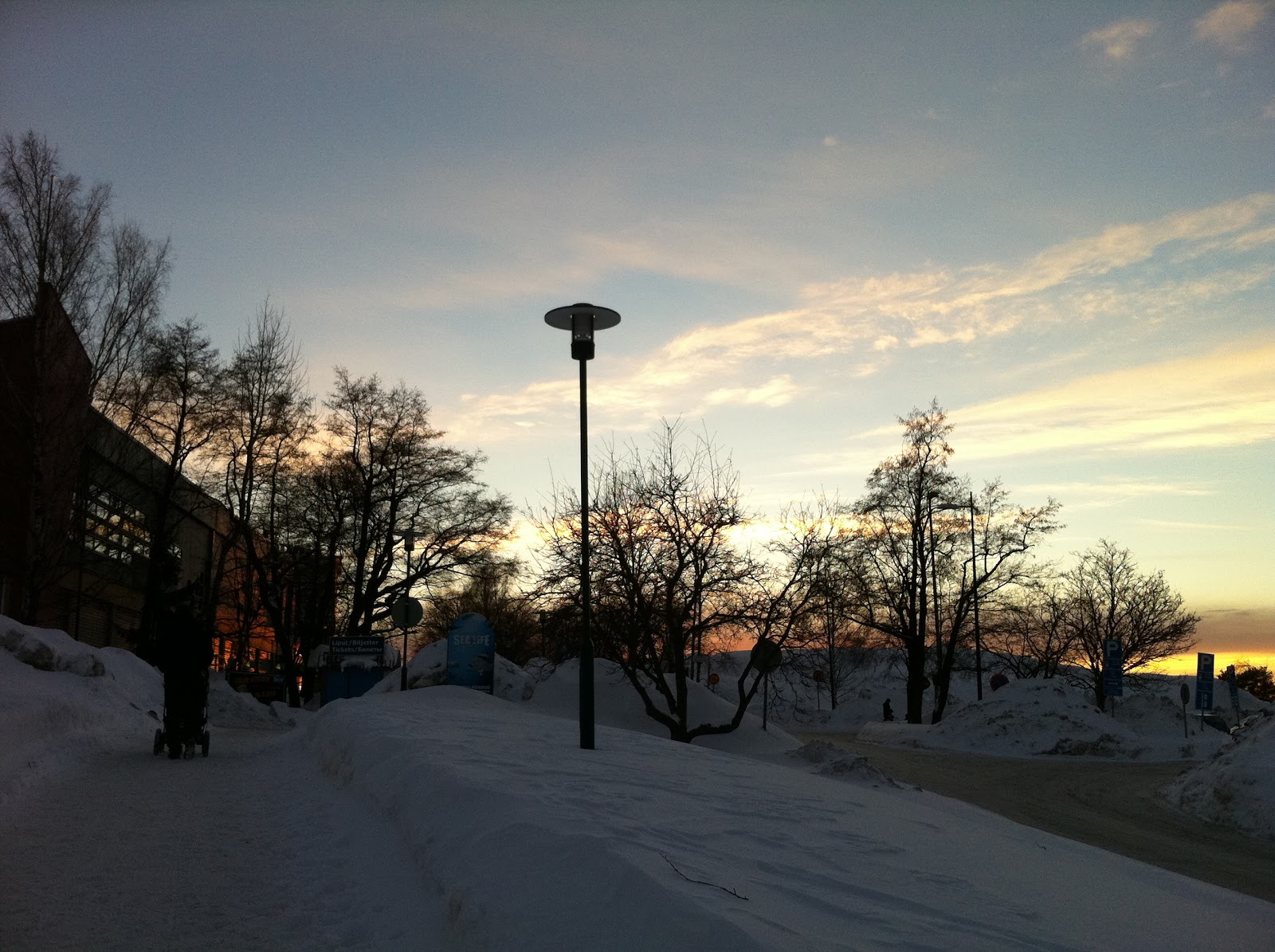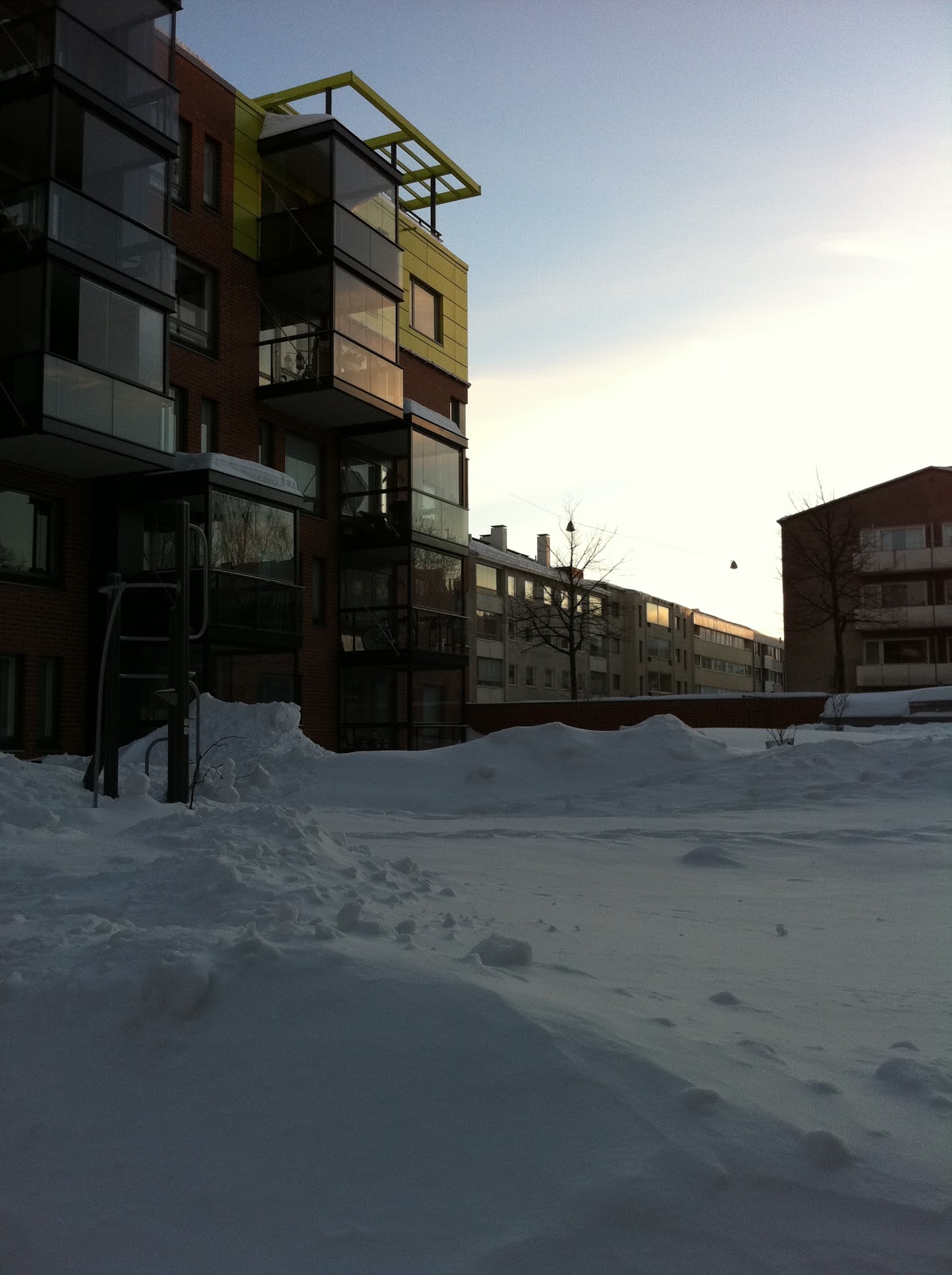 Mä heräsin sunnuntaina vasta kahdentoista aikaan. Lasse ja Kaapo tulivat samaan aikaan pihalta ja kaupasta kotiin. Mä lämmitin Kaapolle ruokaa ja laitoin sen päiväunille. Sitten jatkoin löhöilyä sohvalla ja Lasse teki ruokaa. Kaapo heräsi kolmen aikaan, jolloin vihdoin vaihdoin yökkärin pois. Sitten lähdimme lustelemaan! Aika löysä päivä. Illalla Kaapoa nukuttaessa nukahdin itsekkin vielä tunniksi…
