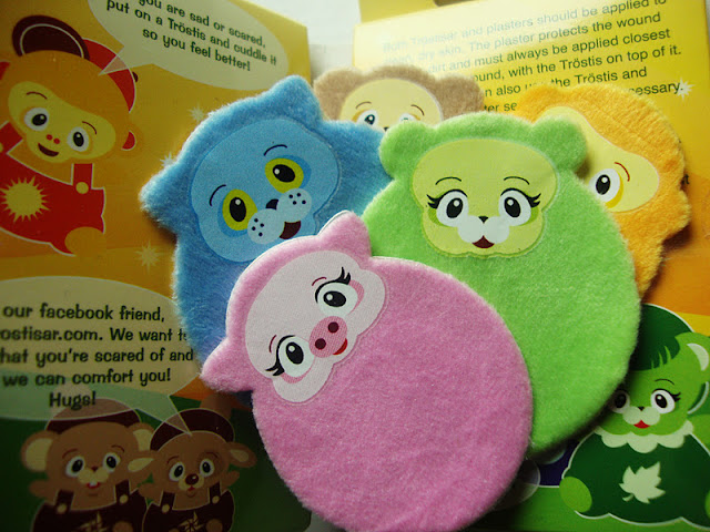 Sain hiljattain tilaisuuden testata helmikuussa Suomen myntiin tulevia Tröstisar pehmolaastareita. Ne ovat suloisen pehmoisia otuksia jotka lohduttavat lasta kun hän on surullinen, huolestunut tai peloissaan. Laastarit pääsivät heti lohduttamaan siis pientä poloista sairastajaa.