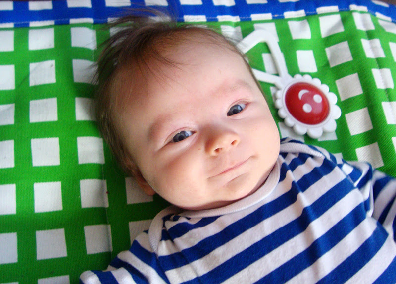 Mahtava tuo Elviksen tukka! Katsottiin just toissapäivänä A:n vauvakuvia (heh, ihan kuin ei enää olisi vauva ;D) ja sillä oli hullu pehko, mutta jossain n. 3kk kieppeillä alkanut harventua ja nyt on sit semmonen pappalook 😀