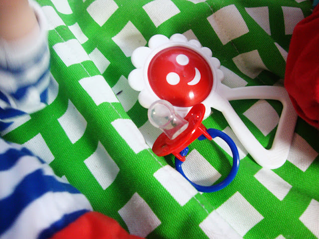 Ja vihreää ja sinistä, ruutua ja raitaa. Ikkunasta ihmetellään lumituiskua ja köllötellään leikkimatolla.