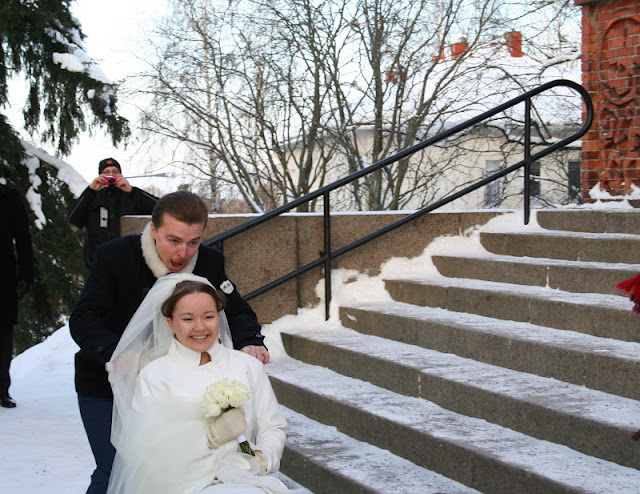 Ihanaa, morsiuspari taisi saapua potkukelkalla!