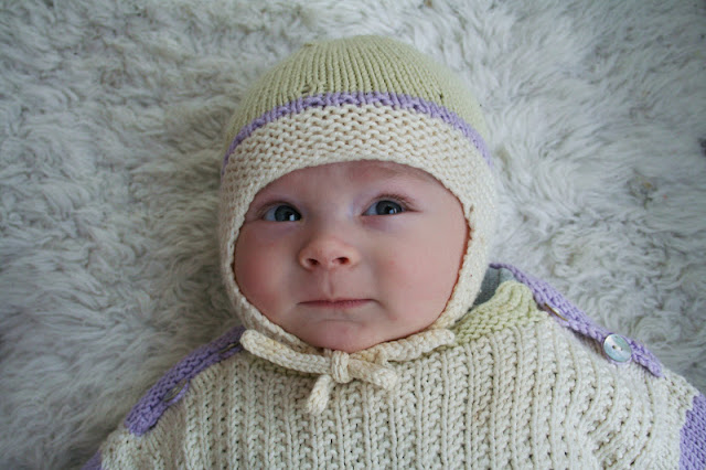Jos olisin tuo vauva en suostuisi tämän kaman jälkeen käyttämään enään mitään muuta. Vauvalangan väreinäkin on kevään hitti, pastellisävyt. Tämä asu päällä nukuttiin muuten eilen parvekkeella aamupäiväpäikkärienkat.