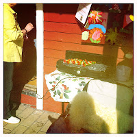 Tänään ollaan päästy vihdoin kunnolla ulos. Oltu puistossa, ihasteltu kaverin uutta takkia, avitettu kevättä rikkomalla jäätä, syöty kakkua ulkona, kuolattu muiden grilliherkkuja, käyty kerhossa sukkia kuivattelemassa, jonotettu puolitoista tuntia conversen ystävämyynnissä, ostettu parit uudet kengät, melkein ostettu parvekkeelle kukkia, syöty roskaa, matkustettu ratikalla ja tultu vihdoin kotiin. Mennään vielä Punavuoreen mummilaan syömään taikkua ja katsomaan VOF:ia. Hyvää viikonloppua!