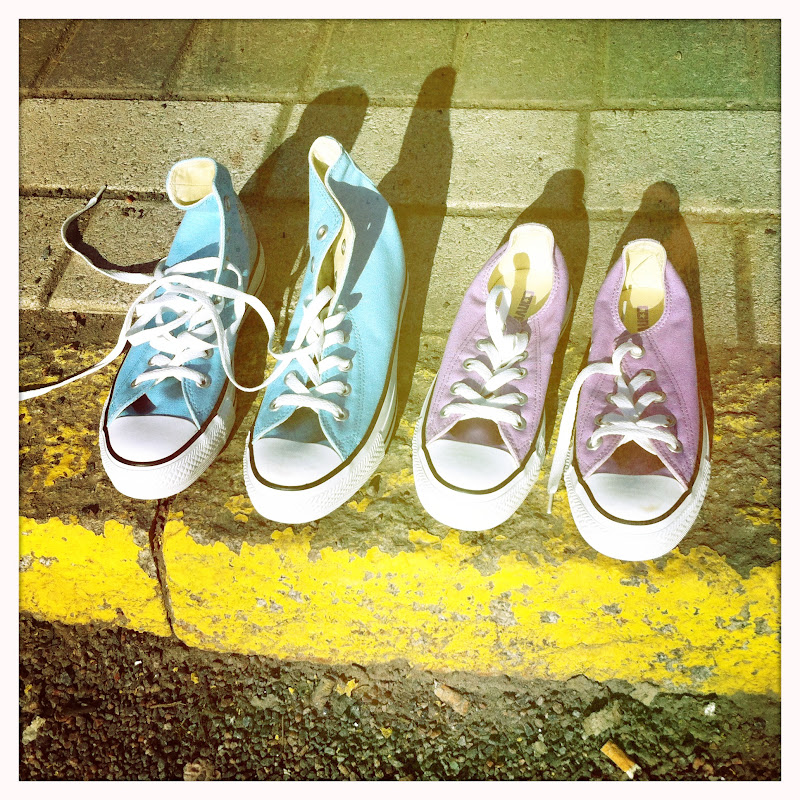 Tänään ollaan päästy vihdoin kunnolla ulos. Oltu puistossa, ihasteltu kaverin uutta takkia, avitettu kevättä rikkomalla jäätä, syöty kakkua ulkona, kuolattu muiden grilliherkkuja, käyty kerhossa sukkia kuivattelemassa, jonotettu puolitoista tuntia conversen ystävämyynnissä, ostettu parit uudet kengät, melkein ostettu parvekkeelle kukkia, syöty roskaa, matkustettu ratikalla ja tultu vihdoin kotiin. Mennään vielä Punavuoreen mummilaan syömään taikkua ja katsomaan VOF:ia. Hyvää viikonloppua!