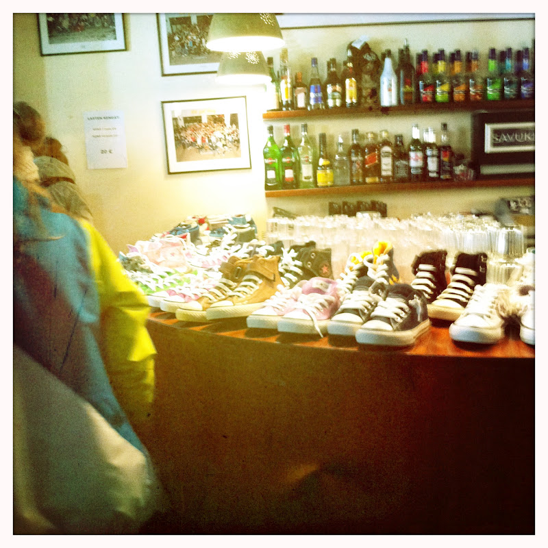 Tokassa kuvassa Elviksellä Baby Banzit kirpparilta, Kaapolla Cebét Spectsaversista ja omani Vansit ovat ostettu Carlingsista.