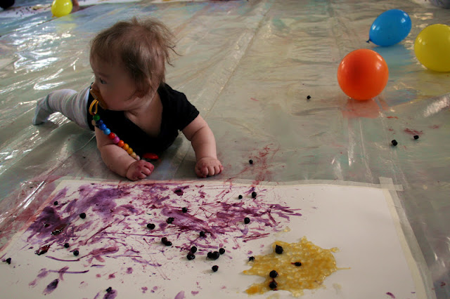 Vietimme aamupäivällä Elvarin kanssa laatuaikaa kaksin ja kävimme vauvojen värikylvyssä. Kaapon kanssa olemme harrastaneet samaa, nykyisin hän kuitenkin tykkää mielummin taitella pensselin kanssa pöydän ääressä. Elvis oli aluksi hieman epäileväinen mutta pienen maitotankkauksen jälkeen ihan messissä. Taiteilun jälkeen maistui uni oranssissa pesässä.