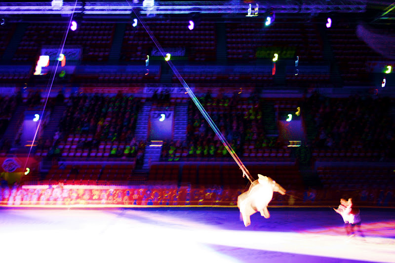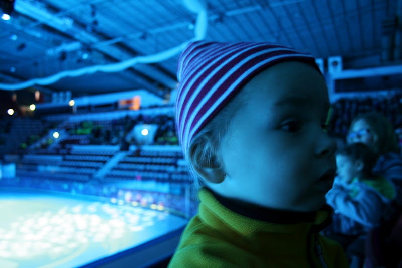Jääshow oli hyvä paikka harjoitella esityksessä olemista, seuraamista ja omalla paikalla istumista. Näytös oli koululaisnäytös ja paikalla oli paljon luokkia ja päiväkotiryhmiä. Pieni juttelu ja eväiden syönti ei haitannut esitystä, esiintyjiä tai muita katsojia. Elvis oli myös mukana ja viihtyi Manducassa lähes koko shown. Tai siis puoliväliin. Sen jälkeen sekä omani että muut lapset alkoivat kiemurrella penkeissään, karkailemaan ja kitisemään. Kivaa oli kuitenkin!