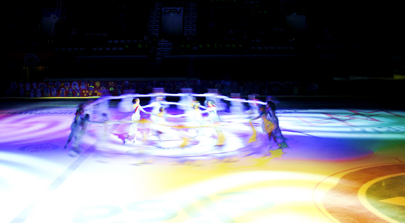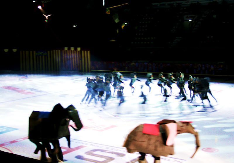 Päätin nyt rohkaistua ja lähdin leikkipuistoporukan kanssa katsomaan Helsingin luistelijoiden kevätesitystä, Dumbon jääseikkailua. 1,5 tuntia kestävässä esityksessä on mukana ihan pienimpiä luistelukoululaisia kuin kolminkertainen maailmanmestariryhmäkin.