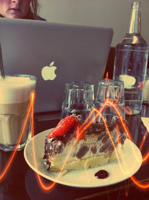 Juomisen jälkeen tuli nälkä ja etenkin makeanhimo. Siihen hätään auttoi uusi AlppiTori. Kyllä taas kelpaa olla. Alppitori on ihan hiljattain Alppilaan tullut viihtyisä, raikas ja laadukkaan oloinen ravintola-kahvila. Kunnon keittiö, herkullisen kuuloinen menu ja ihania leivoksia sekä kakkuja. Kuten esimerkiksi tämä suklaa-smetana-juustokakku.