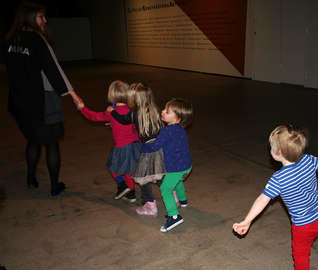 EMMA tarjoaa myös lapsille kaikenlaista kivaa. Ohjelmistossa on erilaisia ja pituisia taidepajoja joissa esimerkiski katellaan ja jutellaan teoksista. Lapsille on myös sadutusta teosten avulla. Myös synttäreiden järjestäminen onnistuu EMMAssa. Lastenohjelma on suunnattu lähinnä yli 4 vuotiaille, mutta toimi nytkin ihan hyvin. Vasrsinkin kun näyttelysali ei ollut vielä muulle yleisölle auki ja lapset saivat juosta siellä melko vapaasti.