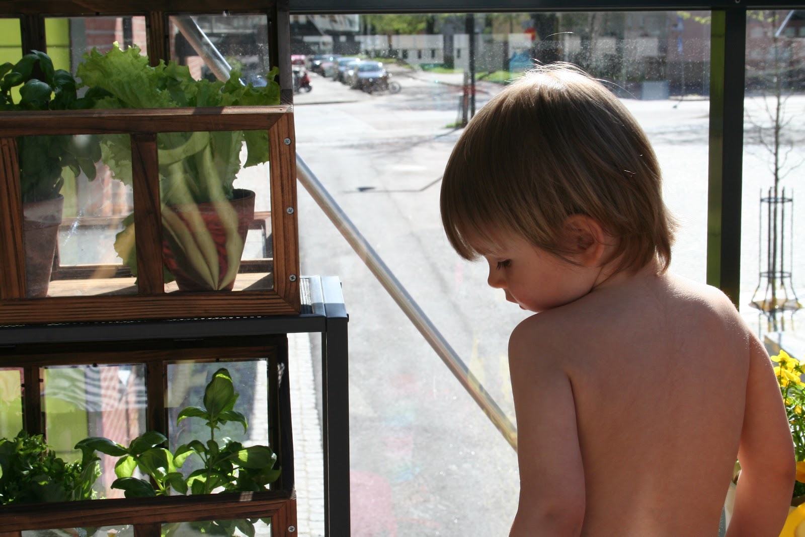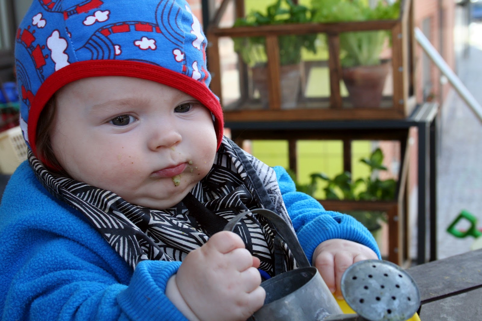 Etenkin Kaapo tykkää leikkiä partsilla tosi paljon. Ja Elvis taas siellä missä isoveli on. Jos parvekkeen ovi jää vahingossa raolleen sujahtaa K heti sinne. Oven edessä on vauvaportti, mutta sitä ei tule käytetyksi. K onneksi leikkii parvekkeella rauhassa, ei revi kukkia (enään) kiipeile tai muuta mistä tämä äiti voisi saada sydärin.