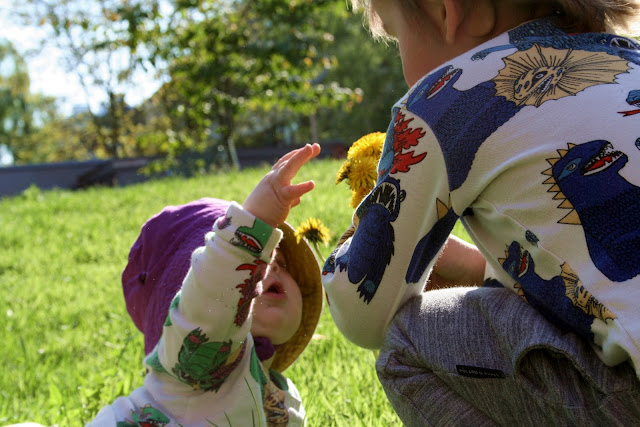 ihan mahtavia kuvia ja ihan mahtavat vaatteet molemmilla! nuo kalsarihousut on ihan ykköset, mä oikein odotan et lokinpoika alkais kävellä niin vois pitää tuollaisia enemmän!