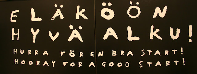 Olimme eilen Elviksen kanssa Eläköön uusi alku – äitiyspakkauksnäyttelyn avajaisissa. Vuosittain yli 40 000 perhettä ottaa pakkauksen. Esikoisiaan odottavia melkein kaikki, rahallisen äitiysavustuksen valitsevat taas useimmin ne joilla on jo lapsia. Samoin teimme mekin. Muistan hyvin päivän kun haimme paketin postista. Oli ihana varovaisesti tutkia yhdessä laatikon sisältöä, hypistellä vaatteita ja viikata ne nätisti takaisin odottamaan lähempää laskettua-aikaa. Me saimme vuoden 2009 äitiyspakkauksen, jonka tunnetuimpia tuotteita ovat varmaan sydän-makuupussi ja käpyhaalari. Silloisessa paketissa taisi olla ensimmäistä kertaa myös kierrätysmateriaalista (muovipulloista) valmisettu villahaalari sekä kestovaippoja.