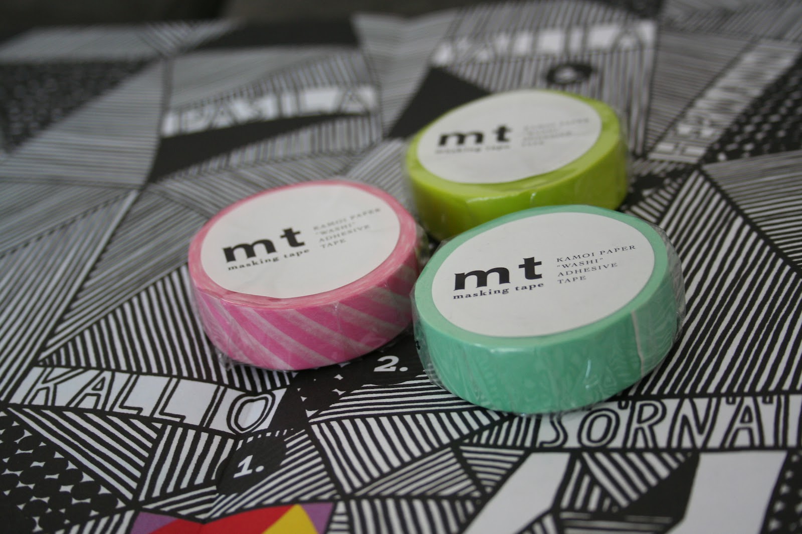 Minäkin innostuin teippailusta samoihin aikoihin kun koko muu blogimaailma, ööö.. lähes vuosi sitten. ”Blogikollaasit” olivat uusia juttuja, mutta muutamista vanhoista asunnoistani kylläkin on löynytynyt samaa ideaa vuosia sitten ja suuremmassa mittakaavassa. Kuten moni moni muukin, tyskästyin maskin teippien väreihin ja kuvioihin. Samoin nyt käytössä siihen miten hyvin ne tarttuvat ja irtoavat.