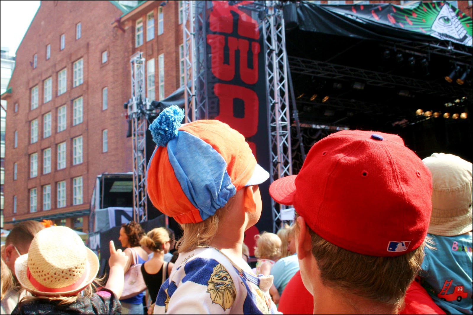 Tänään aurinko helli. No ei oikeasti, se paahtoi, sulatti ja salpasi hengityksen. Huh hellettä! Suunnattiin heti aamusta Kallioon Skidit Festareille. Nopeasti sisäpiha oli tupaten täynnä porukkaa. Paljon tuttuja mahtui myös mukaan, moi vaan vielä kaikille!