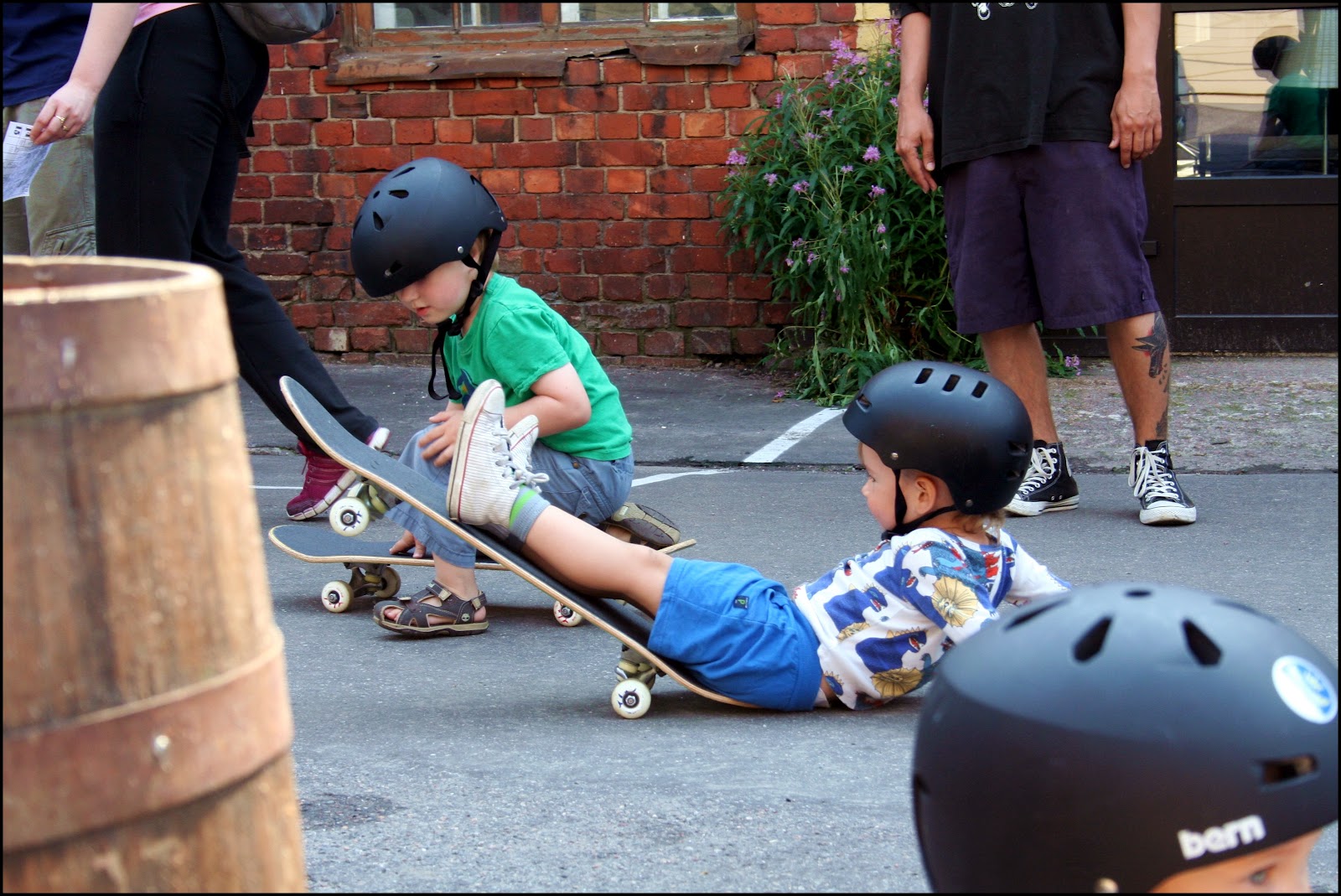 Lasten ilmaisfestareilla oli hirveästi kaikkea hauskaa! Lapsille skeittikoulu, jogaa, muskari, esiintyjiä, tanssiopetusta, elokuvia, disko. Lisäksi erilaisia työpajoja, sarjakuvien piirtämistä, koruaskartelua, värikylpyjä, animaation tekemistä, kirjastoauto, pomppulinna ja vaikka mitä. Brunssia, lounasta, kahviloita, kojuja. Nyt viikonloppuna samalla paikalla pidettävän Kuudes Aisti festareiden ansiosta Skideillä oli myös hienot lavat ja skeittiramppeja.