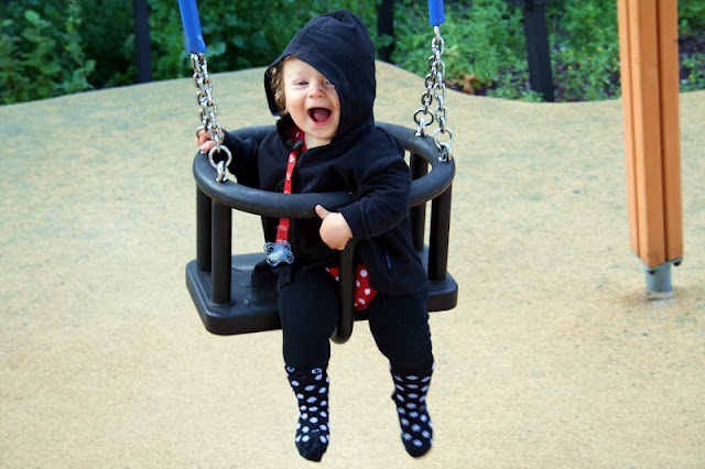 Täältä metsien ja peltojen keskeltä itse lähiössä kasvaneena on toisinaan niin haikeaa katsella leikkipuistokuvia. Pienimmäinen kun ei ikinä ole sellaisessa käynytkään ja tytönkin käynnit pystyy hyvin laskemaan sormin ja ehkä varpain. Toisaalta onhan noilla piha missä temmeltää (omasta mielestäni liikaakin ainakin nurmikon leikkuun aikaan, ei ole hienoa ajettavaa konetta). Kiipeilemään pääsee pihan puihin ja laskea voi vaikka metsän isoa kiveä pitkin.