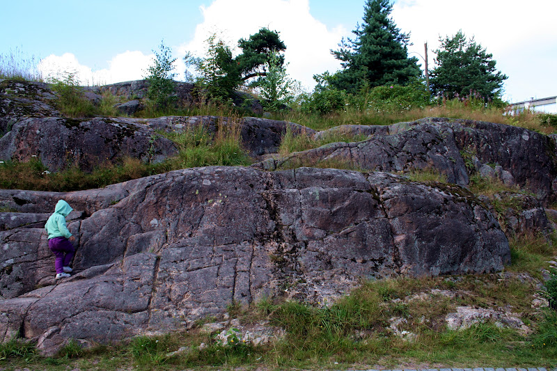 Täältä metsien ja peltojen keskeltä itse lähiössä kasvaneena on toisinaan niin haikeaa katsella leikkipuistokuvia. Pienimmäinen kun ei ikinä ole sellaisessa käynytkään ja tytönkin käynnit pystyy hyvin laskemaan sormin ja ehkä varpain. Toisaalta onhan noilla piha missä temmeltää (omasta mielestäni liikaakin ainakin nurmikon leikkuun aikaan, ei ole hienoa ajettavaa konetta). Kiipeilemään pääsee pihan puihin ja laskea voi vaikka metsän isoa kiveä pitkin.