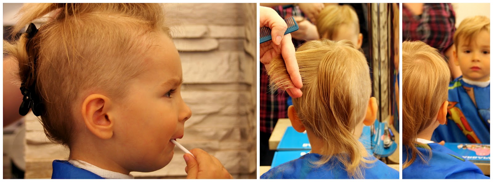 Ihan kiva tukka tuli pojalle,mutta kyllä meän pojat pysyy ilman sylissä pitämisiä ja tikkareita parturin tuolissa. Mitä se tikkarin lötky auttaa oikein? Olenkohan vähän tyhmä vai miten en tajua?