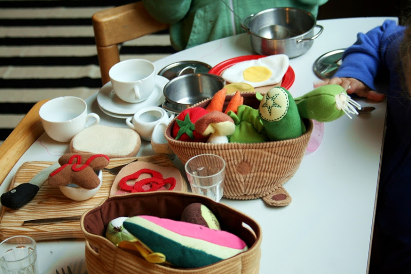 Ikeassa on myynnissä aivan mahtavia leluja erilaisiin lasten roolileikkeihin. Kuten nämä kuvissa näkyvät erilaiset ruokatarvikkeet. Siellä on vaikka mitä ihanaa. Lapsilla on toki niin hyvä mielikuvitus että leikkiä voi millä vaan. Ei välttämättä tarvitse mitään asiaankuuluvaa rekvisiittaa, mutta esimerkiksi näillä ruokatarvikkeilla leikkiessä oppii samalla vihannesten ja hedelmien nimiä.