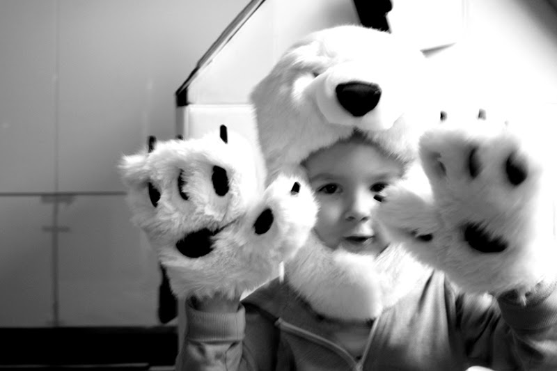 Kaikenmaailman asuja, päähineitä ja naamareita meiltä alkaa kuitenkin löytyä. Tänään saatiin lisää, kun voitin H&M myymälässä olleesta arvonnasta Unicef-malliston jääkarhu -ja kanipäähineet. Omasta mielestäni nuo lapset on hurjan söpöjä hassuissa asuissa leikkiessään, mutta onhan ne varmasti aika omituien tuntuiset päällä. Onpahan valinnanvaraa tulevia naamiaisia varten.