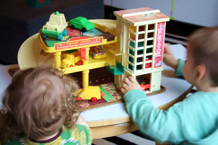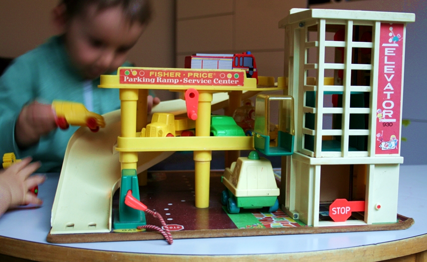 Yksi omasta lapsuudesta hyvin mieleen jäänyt lelu on Fisher Pricen parkkitalo. Hissillä kujetettiin pikkuautoja (ja varmaan muutakin) ylös ja ajettiin liuskaa pitkin alas. Välillä tankattiin, otettiin tullimaksuja tai vietiin autot korjaamolle.