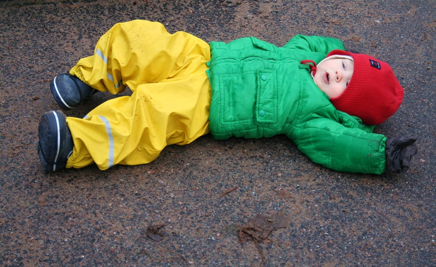 Mä tykkään Sisulla käyttää kuravaatteita, kun yleisin leikki on maata maassa ja leikkiä traktoreilla/autoilla/muilla koneilla. Hiukka helpompi puhdistaa, kun tälläistä kurakeliä ollut. Ihanaa talvi tulee!