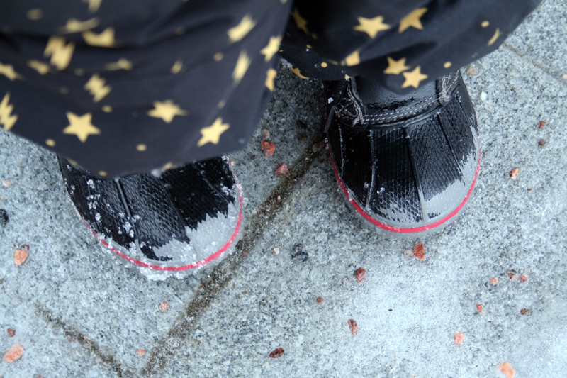 Tässä kuvaa vielä Kaapon tavikengistä. Ne ovat Crocsin duckbootsit, muuten olen ollut niihin tyytyväinen mutta kärjistä lähti nopeasti kulumaan musta väri pois. En ikinä muistanut reklamoida ja nyt se taitaa olla jo liian myöhäistä. Katsotaan jos saisin nuo jotenkin fiksattua siistimmäksi. Onko muilla näitä kenkiä ja käynyt samoin?