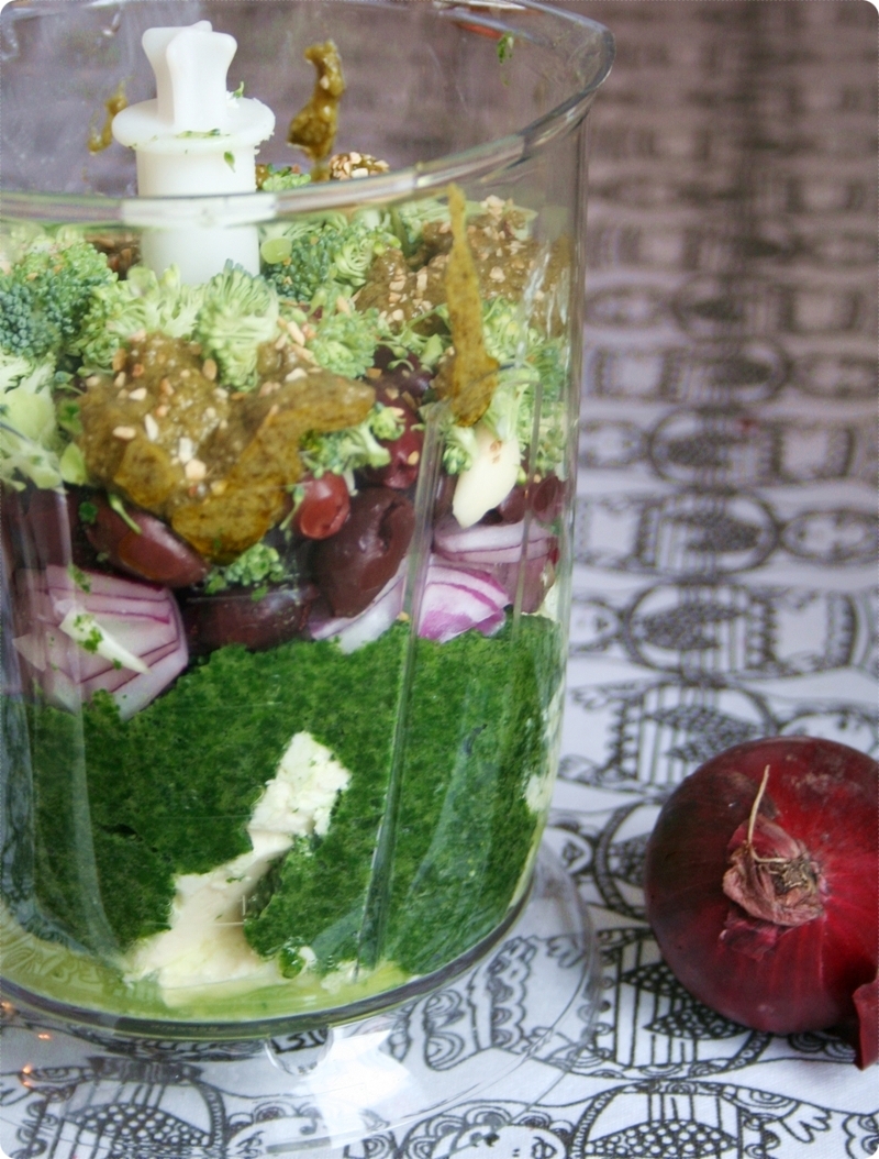 Tai no, nuo valkosipulin, peston ja parsakaalin määrät heitin päästä. Eli niitä voi laittaa oman maun mukaan. Lisäsin joukkoon myös ripauksen kuivattua valkosipuliruohetta sekä hyppysellisen valkopippuria.
