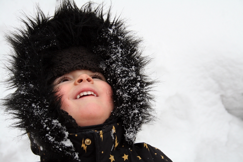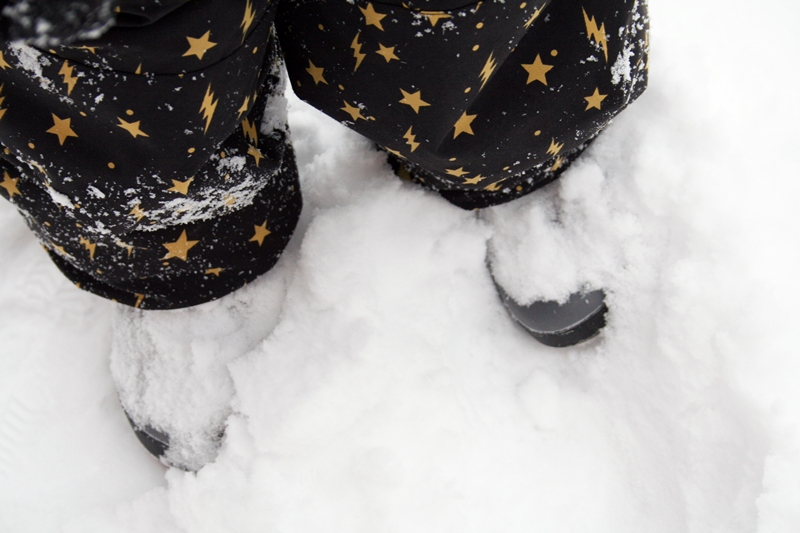 Lunta olikin tullut taas aika lailla! Etenkin pojat nauttivat kun pääsivät pitkästä aikaa kunnolla ulos leikkimään. Elviskin, joka usein kiukuttelee, sillä lumessa liikkuminen on vielä niin hankalaa. Nyt ei edes harmittanut vaikka monta kertaa upposi päätä myöten hankeen.
