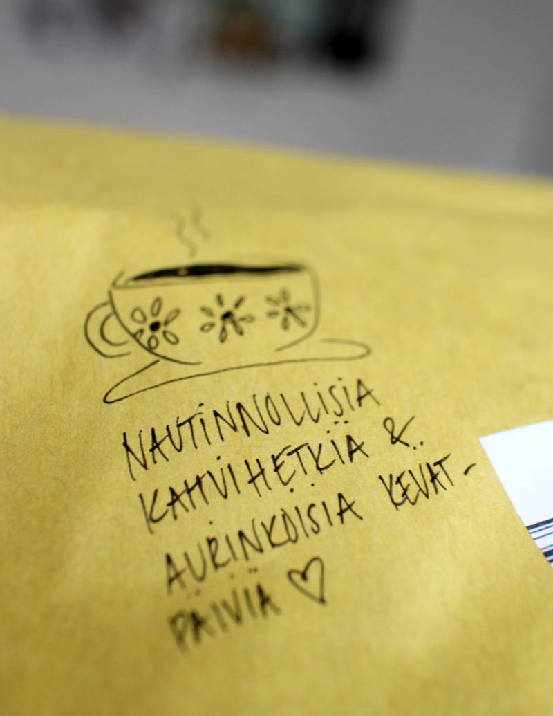 Mutta minäpä sain. Aivan ihanalta Nooralta Curiouser & Curioser blogista. Hän laittoi viestin ja kysyin josko minä tahtoisin hänelle ylimääräiset, kuukauden aamukahvit. Ette arvaakkaan miten iloiseksi tämä minut teki!