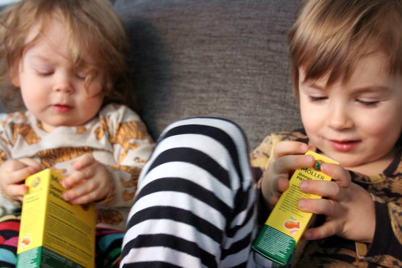 Käsi ylös kuinka monen perheessä lapset syövät jotain Omega-3 rasvahappovalmistetta? Minäkin nostan käden, mutta vielä kaksi viikkoa sitten en olisi nostanut. Lapsemme ovat satunnaiseti saaneet multivitamiinia tai maitohappobakteereita, mutta oikeastaan vain D-vitamiini on sellainen jota he ovat säännöllisesti (lähes) päivittäin saaneet pillerin muodossa. Olen aina ajatellut että kaiken muun tarvisevan he saavat terveellisestä ja monipuolisesta ruokavaliosta. Ja niinhän se varmaan onkin.