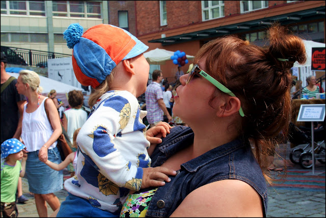 Kaikesta ruokatarjonnasta huolimatta käytiin välissä syömässä muualla sushia ja wokkia. Teki ihan hyvää käydä hengähtämässä vähän väljemmällä. Tukalasta helteestä, joka oli paikoitellen jopa minulle liian tukala, ihmisryysästä ja perus väsy ja nälkä raivareista huolimatta oli oikein iloinen ja onnistunut päivä. Taas jälleen on ylistettävä, ihana kesä ja ihana Helsinki. Ja tietty ihana Kallio. Voisko täältä muka ikinä muuttaa pois? Ens kesänä taas uusiksi. Silloin ehkä myös tämä äiti ottaa osaa tuohon aikuisten festariin.