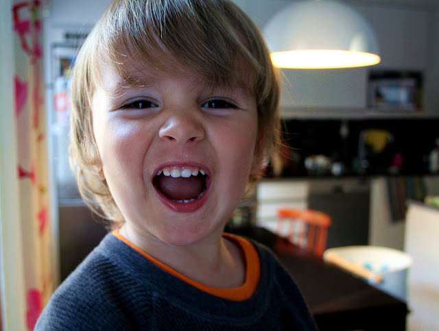 Tidättehän hiuksia tai niiden mallia kasvattessa on usein pitkään sellainen ärsyttävä välivaihe. Me kyllästyimme siihen, vaikka jo lähellä oli että Kaapon etuhiukset saisi korvan taakse. Muutama ilta sitten päätimme sitten leikata hiukset. Kaapo suostui, sai suklaarusinoita (joten kuinka olisikaan voinut kieltäytyä). K:lla on tosi paksut hiukset jotka tuollaisella menevällä melkein kolmevuotiaalla on usein hiestä märät ja silmien edessä.