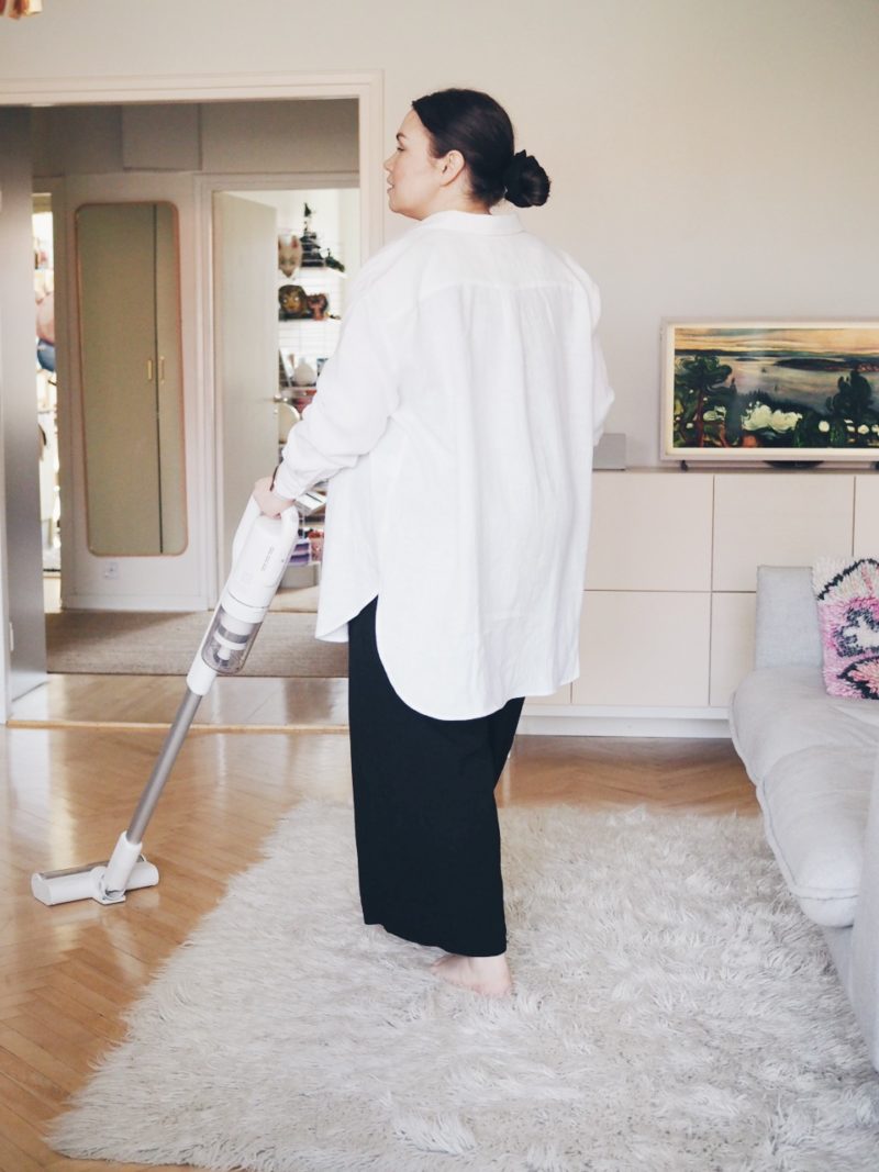 Asensimme hiljattain parvekkeelle puiset lattialaudat ja kuten toivoimmekin, viihtyvyys nousi valtavasti. Suunnittelin partsin perälle sohvasysteemiä, mutta koska parveke on hyvin pieni, päädyimmekin ainakin toistaiseksi siihen, ettei sinne tule mitään suuria tai vaikeasti liikuteltavia kalusteita. Tämä kesä mennäänkin siis helposti siirrettävillä tyynyillä, patjoilla ja vilteillä, jolloin käyttötarkoitusta on helppo muunnella. Itse olen tykästynyt istumaan iltapäivä-auringossa siellä äänikirjaa kuunnellen.